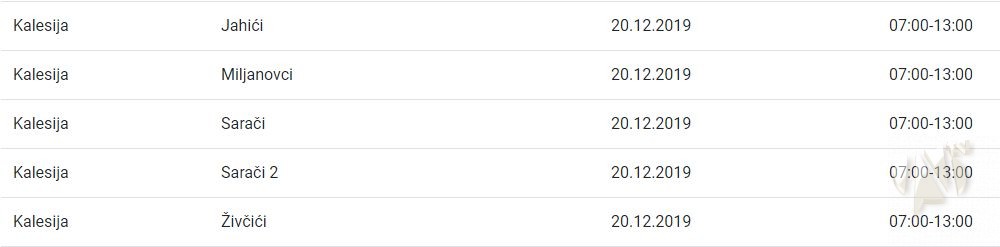 U nastavku pogledajte gdje će doći do prekida isporuke električne energije zajedno sa satnicom obustave.