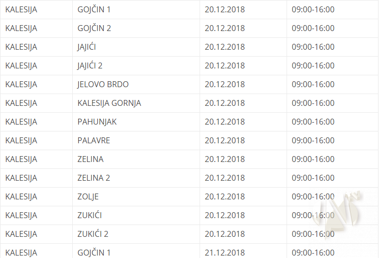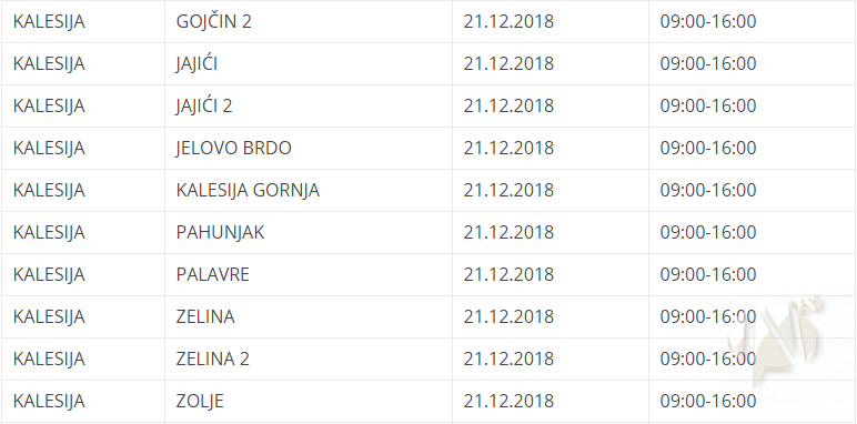 Nekoliko kalesijskih naselja u četvrtak i petak bez struje