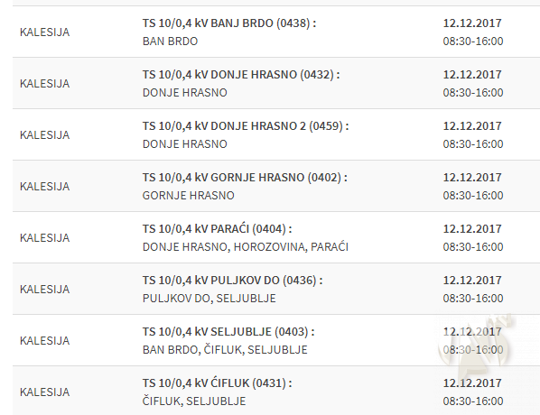 Do prekida u snabdijevanju električnom energijom doći će u sljedećim naseljima: