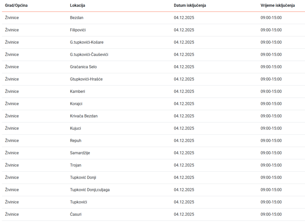 Nekoliko naselja na području Živinica sutra će biti bez električne energije u periodu od 9 do 15 sati, saopćeno je iz Elektroprivrede Bosne i Hercegovine.