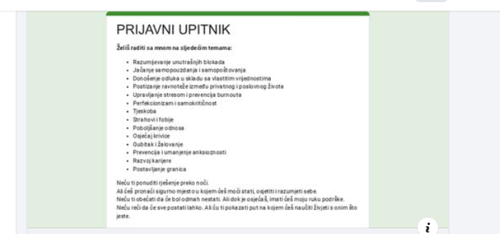 Riječ je o individualnom radu sa psihoterapeutkinjom putem online platforme.
