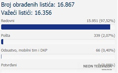 Još uvijek se čekaju glasovi specijalnih “COVID-19” timova a radi se o 33 glasaćka listića i nije poznato da li ima još glasova pristiglih putem pošte.
