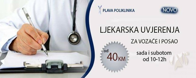 Plava poliklinika Tuzla i Sarajevo važi za jednu od najmodernije opremljeni klinika u BiH. Kako bi pomogli građanima odlučili su sada i subotom u terminu od 10:00 -12:00 sati da izdaju ljekarska uvjerenja za vozače i za posao.