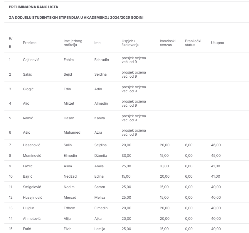 Objavljena preliminarna lista dobitnika stipendija Općine Kalesija