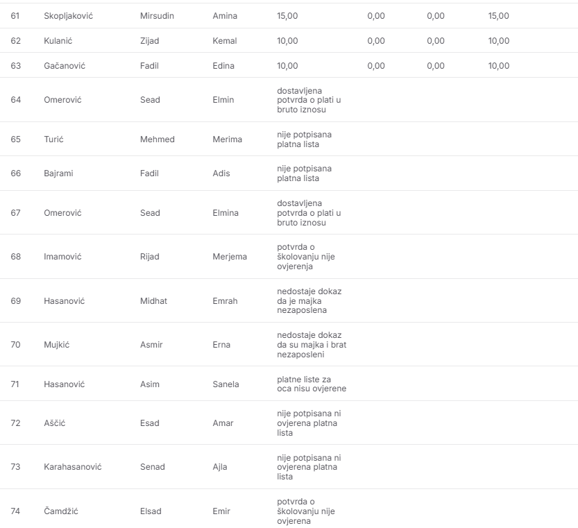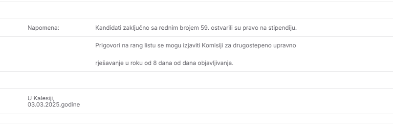 Komsija je nakon pristiglih prijava, u skladu sa Pravilnikom donijela privremenu listu sa imenima studenata koji ispunjavaju uslove predviđene javnim pozivom.
