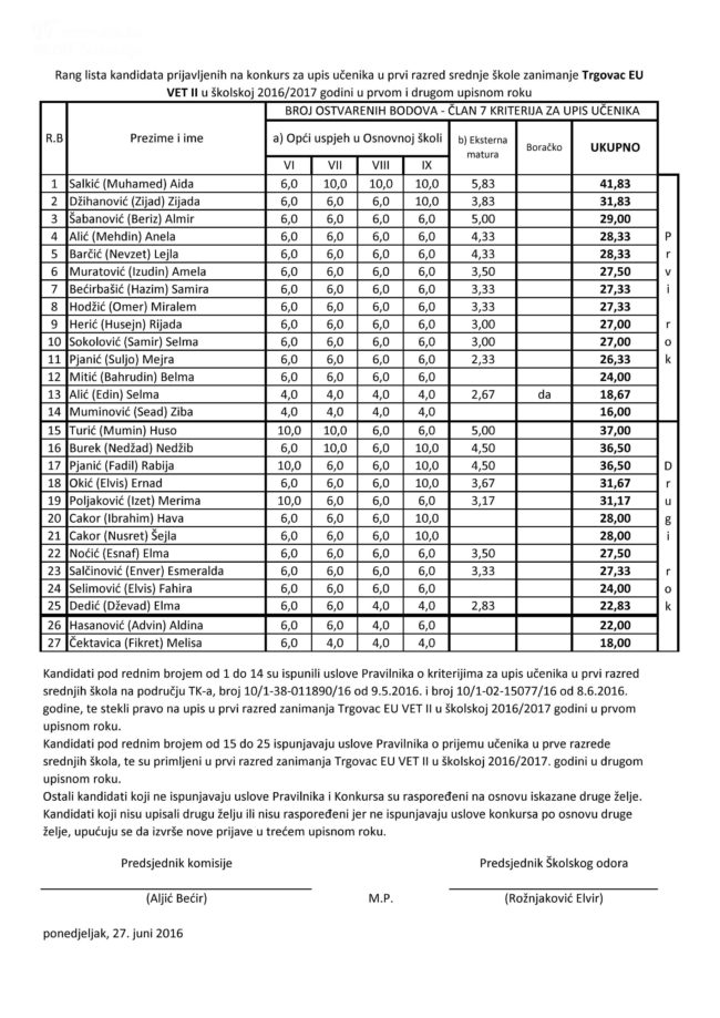 Donosimo Vam rezultate nakon drugog upisnog roka za stručne škole.