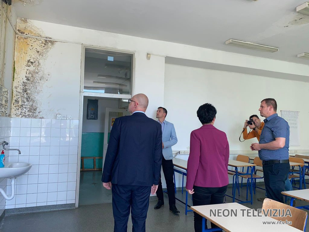 zimus krov počeo prokišnjavati, a inspekcija intervenirala zatvaranjem jednog dijela škole, upoznali su goste predstavnici škole sa trenutnom situacijom. Nastava se, rečeno je ovom prilikom, odvija u tri smjene što bi moglo dodatno utjecati na rezultate nastave.