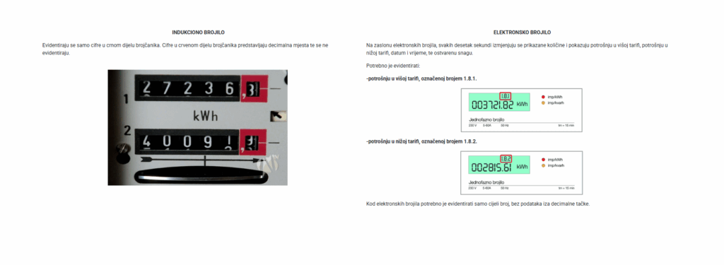 Uputstvo o načinu očitanja utroška električne energije, odnosno stanja brojčanika brojila, dostupno je na portalu  JP Elektroprivreda BiH  www.epbih.ba.