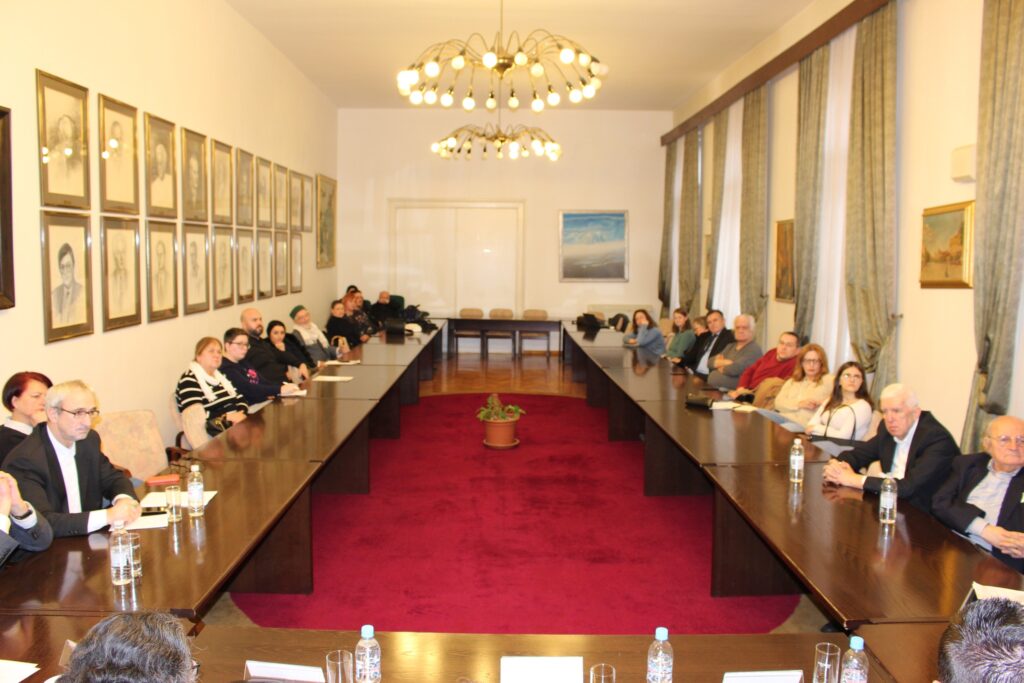 Na naučnoj tribini uvodna obraćanja održali su rektor Univerziteta u Sarajevu prof. dr. Tarik Zaimović i direktor Univerziteta u Sarajevu – Instituta za istraživanje zločina protiv čovječnosti i međunarodnog prava dr. sc. Muamer Džananović.