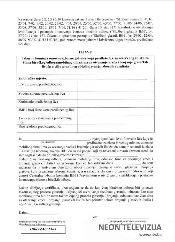 2. Za člаnа biračkog odbora ne može biti imenovano lice (član 2.3.Izbornog zakona BiH) :