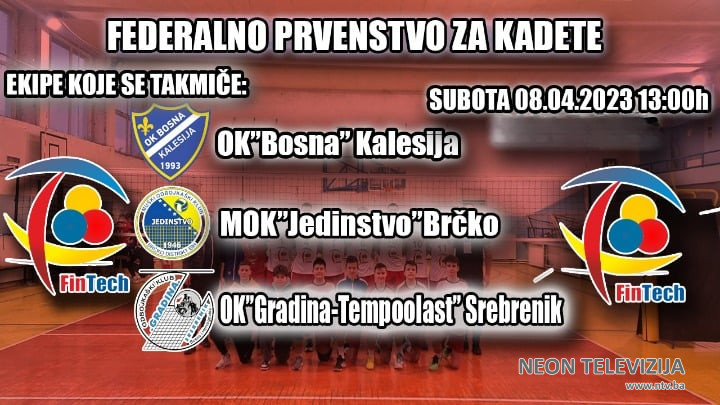 Odbojkaškom klubu “Bosna” Kalesija je pripala čast da bude domaćin federalnog prvenstva koje se u Kalesiji igra u subotu, 8. aprila 2023. godine, sa početkom u 13:00 sati. Utakmica se igra u sali MSŠ Kalesija.