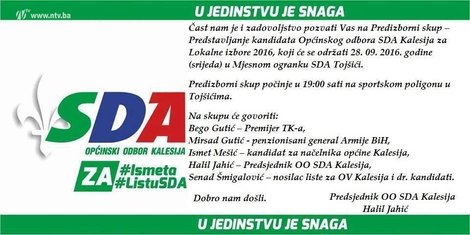 OO SDA Kalesija večeras će na sportskom poligonu u Tojšićima sa početkom u 19:00 sati održati predizborni skup.
