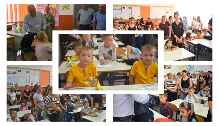 ujedno i predsjednik Aktiva direktora prvačićima podijelio školske torbe