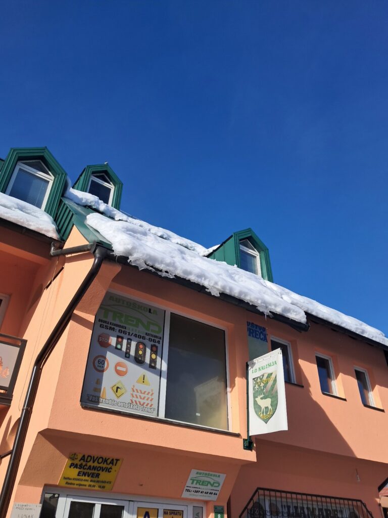 Dolaskom toplijih dana i porastom temperatura, snijeg koji se zadržao na krovovima kuća i zgrada počeo je da se topi. Iako donosi olakšanje, topljenje snijega sa sobom nosi i određene opasnosti, posebno za prolaznike i imovinu.