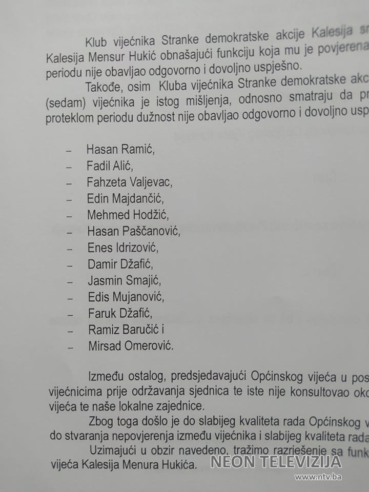 Za smjenu predsjedavajućeg je i 13 vijećnika koji su potpisnici prijedloga ove Odluke.