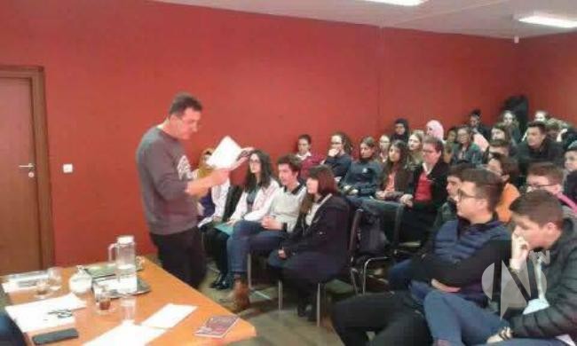 U dupke ispunjenoj školskoj sali Meša i Omer su cijeli sat čitali svoje radove i pričali sa đacima, poklanjajući svoja iskustva vezana za pisanje. Odgovarali su na zanimljiva pitanja profesora, ostvarujući prisan odnos sa svima koji su sa zanimanjem pratili čitanje.