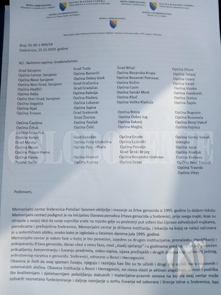 Emir Suljagić, direktor Memorijalnog centra Potočari, pisao je svim kantonima, načelnicima i federalnim vlastima