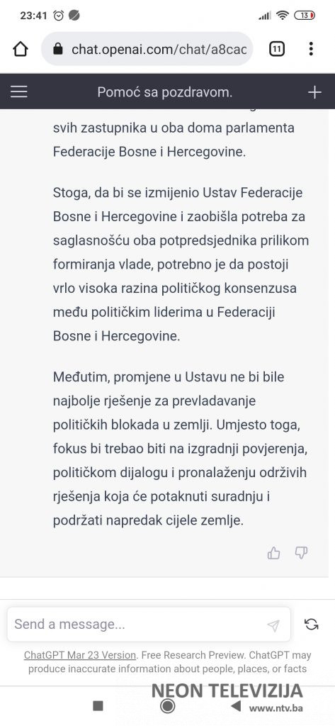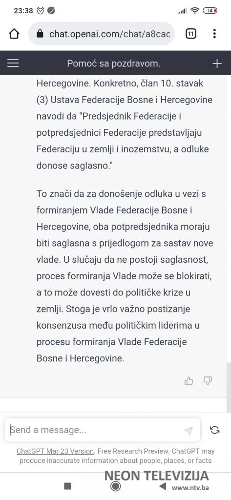 Pitali smo ChatGPT, kako odblokirati proces formiranja vlasti u Federaciji BiH, pročitajte šta nam je odgovorio. ?