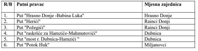 Od strane Mjesnih zajednica pristiglo je 11. prijava putnih pravaca za izgradnju i rekonstrukciju u 2026. godini, ali ni za jedan kandidovani putni pravac nije predočen dokaz o prikupljenim finansijskim sredstvima za sufinansiranje od strane građana. Zbog nedostatka sredstava za sufinansiranje od strane građana nijedan kandidovani putni pravac ne ispunjava uslove utvrđene Programom izgradnje i rekonstrukcije lokalnih i nekategorisanih puteva na području općine Kalesija za period 2025-2028. godina (”Sl. glasnik općine Kalesija”, br. 1/25) , te se iz tih razloga ne nalazi u Planu asfaltiranja za 2026.godinu, navedeno je u obrazloženju od strane predlagača.