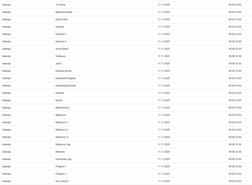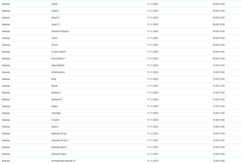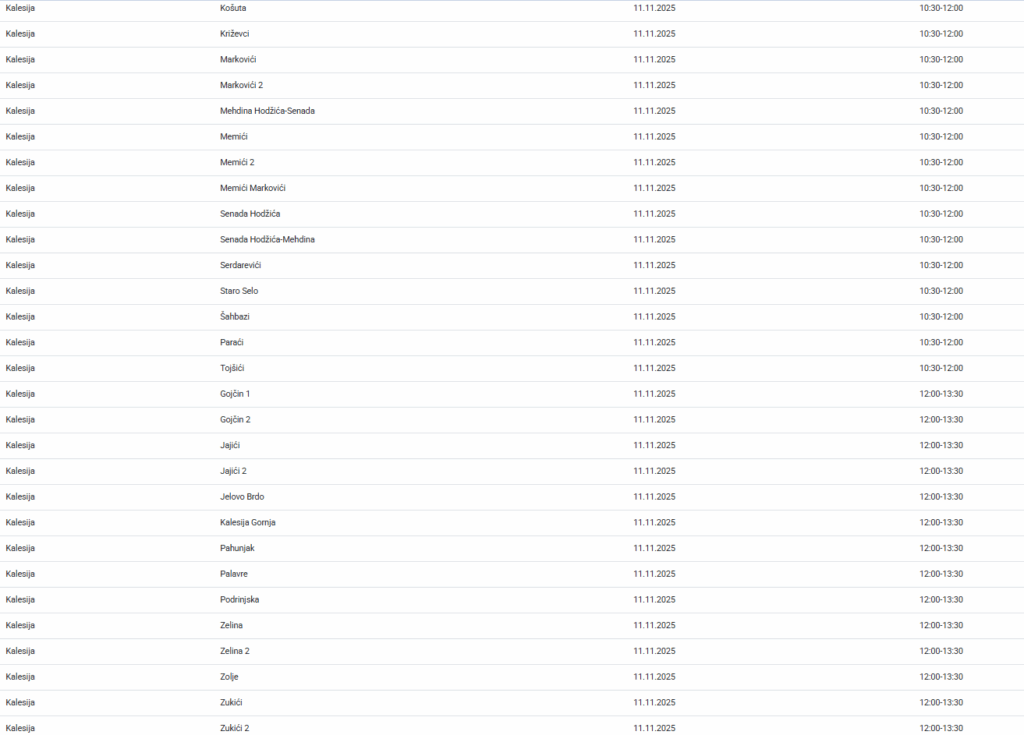 Na području Kalesije sutra (11.11.2025.) doći će do prekida u snabdijevanju električnom energijom u sljedećim ulicama/naseljima: