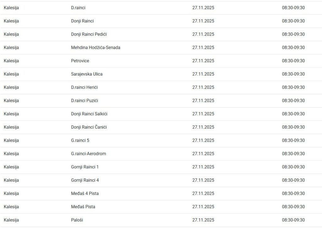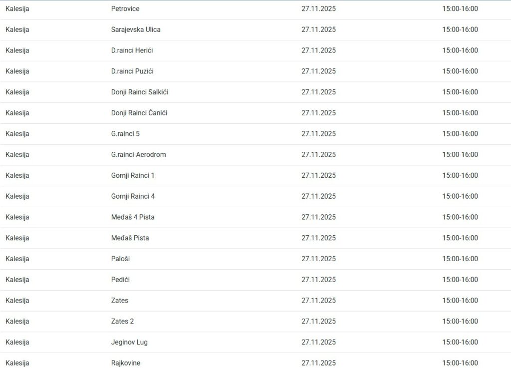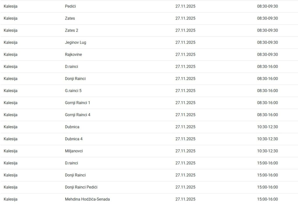 Veliki broj naselja na području Kalesije će sutra (27. novembar) biti bez električne energije, saopćeno je iz Elektroprivrede Bosne i Hercegovine.