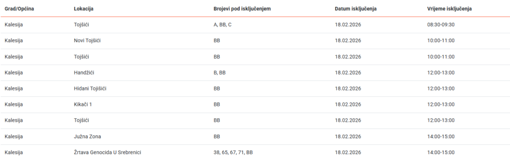 U dijelovima Kalesije sutra (18. februar) će doći do prekida u snabdijevanju električnom energijom, saopćeno je iz Elektroprivrede.
