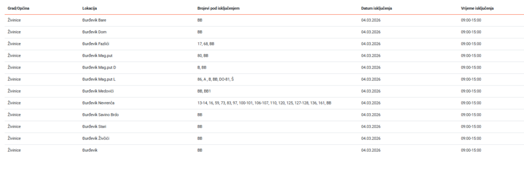 Nekoliko živiničkih naselja će u srijedu, 4. marta, biti bez električne energije, saopćeno je iz Elektroprivrede.