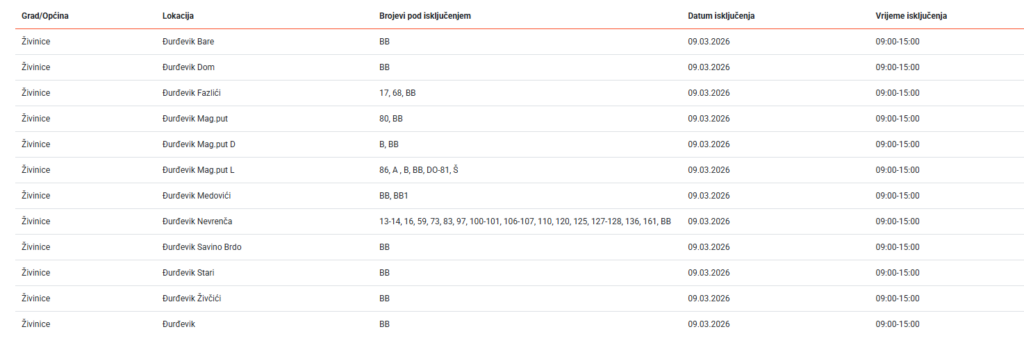 Nekoliko živiničkih naselja će u ponedjeljak, 9. marta, biti bez električne energije, saopćeno je iz Elektroprivrede.