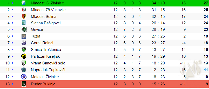 U jesenjem dijelu sezone FK “Mladost 78” Vukovije Donje zauzeo je drugo mjesto na tabeli sa 25 osvojenih bodova, sa samo dva boda manje od prvoplasirane ekipe Mladosti iz Živinica Gornjih.