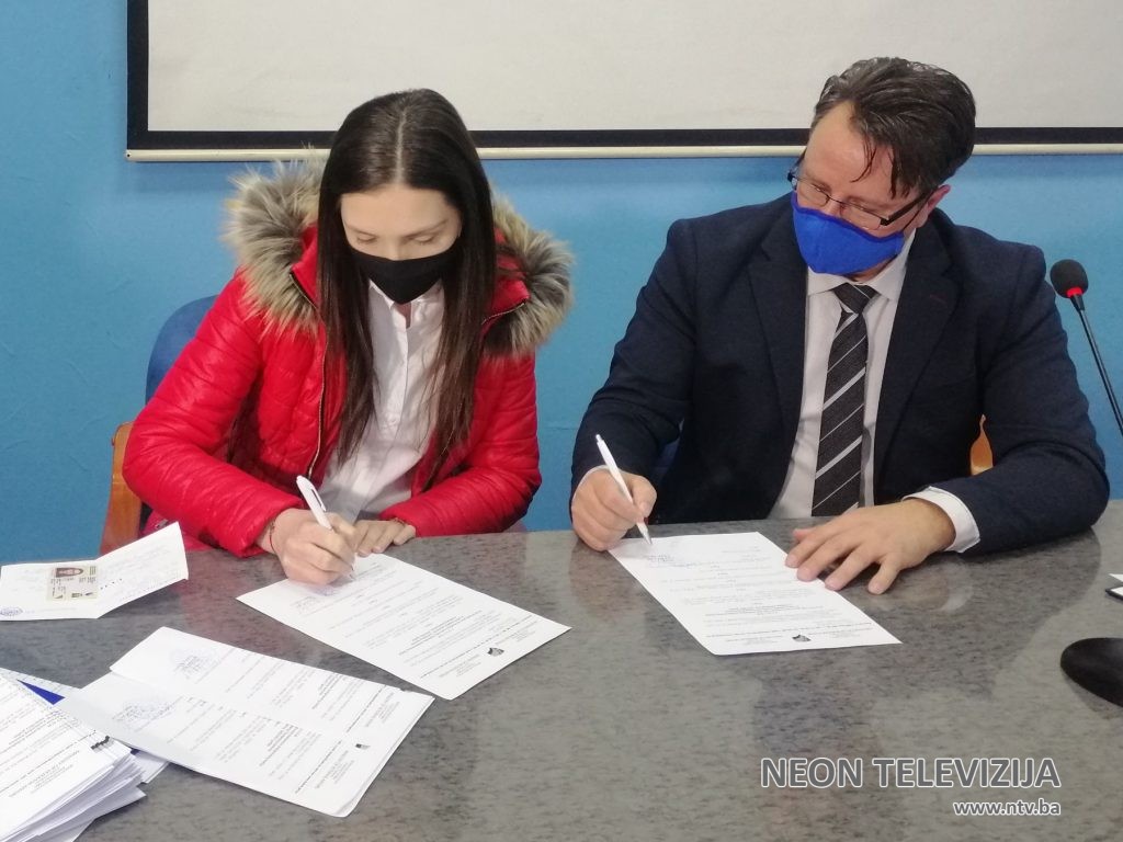 Ugovore za ostvarivanje prava na beneficiju kod plaćanja naknada za upis u novu studijsku/akademsku godinu redovnim studentima dodiplomskog studija iz reda branilačke populacije Tuzlanskog kantona za studijsku/akademsku 2020/2021 danas je sa ministrom za boračka pitanja Fedahijom Ahmetovićem potpisalo 55 studenata.