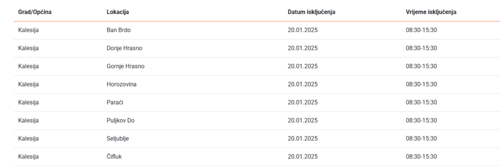 U pojedinim dijelovima Kalesije danas će doći do privremene obustave isporuke električne energije u vremenu od 8:30 do 15:30 sati.