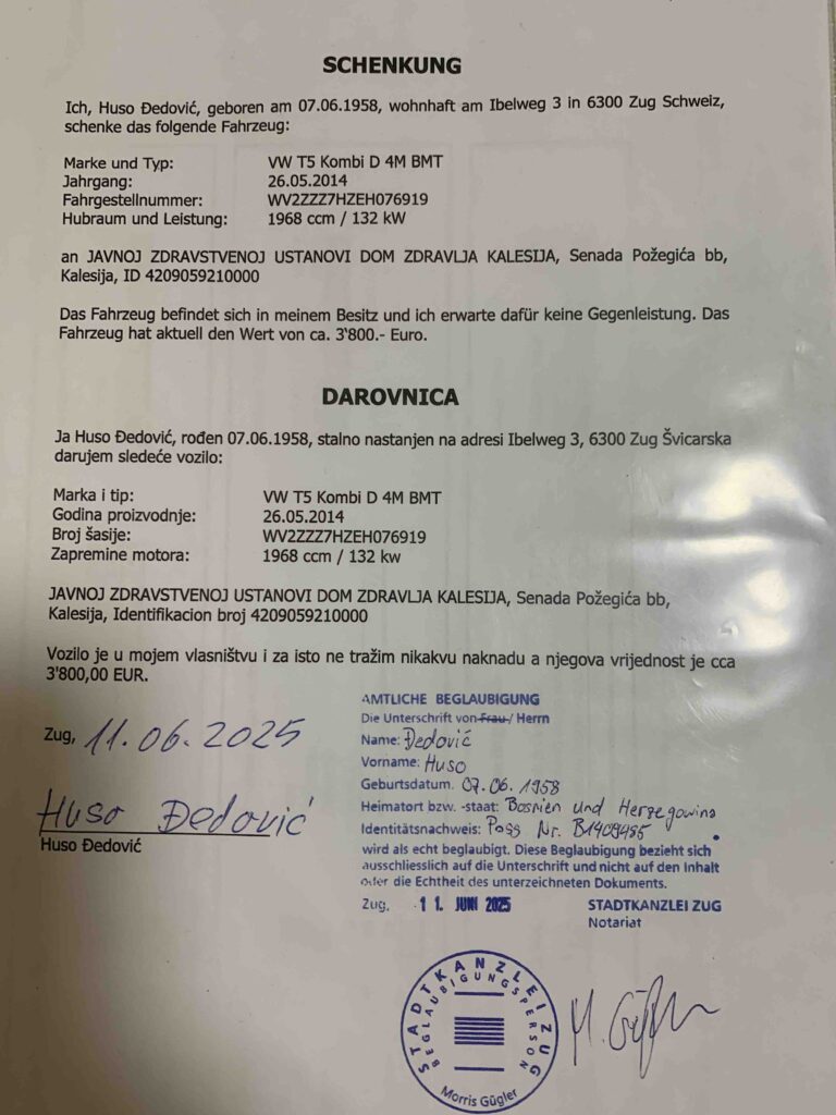 “Moram da naglasim i da se zahvalim građanima Kalesije koji rade i žive u Zugu koji su donirali ovo vozilo predvođeni Husom Đedovićem koji je sve to organizirao. Moram napomenuti i da je inicijativa nastala zahvaljujući načelniku oćine Kalesija nakon što sam mu predočio da smo u lošoj situaciji što se tiče sanitetskih vozila” istakao je dr. Ahmet Tuzlak, direktor JZU Dom zdravlja Kalesija.