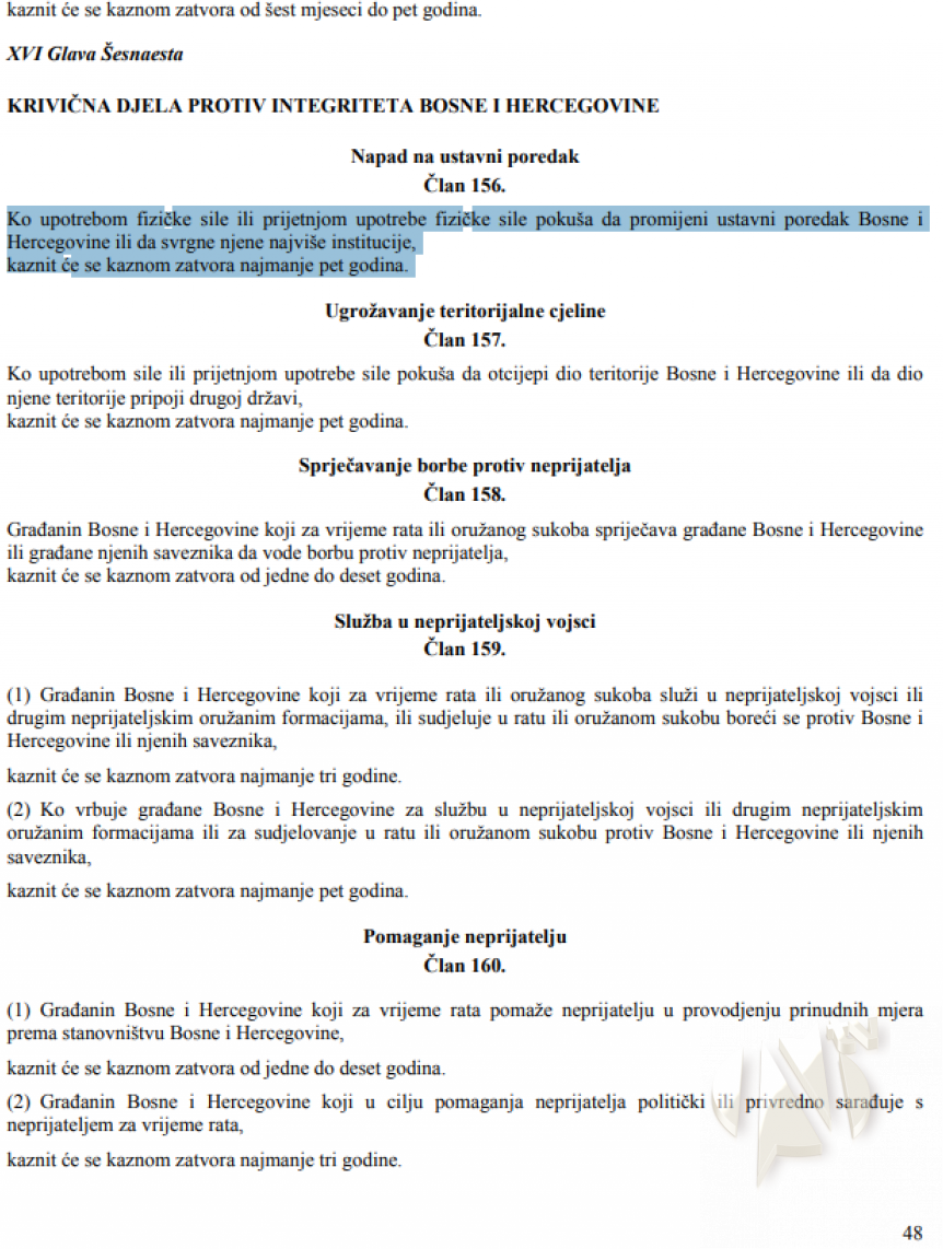 Lasić je na taj način prekršio Član 156. Krivičnog zakona BiH, koji glasi: „Ko upotrebom fizičke sile ili prijetnjom upotrebe fizičke sile pokuša da promijeni ustavni poredak Bosne i Hercegovine ili da svrgne njene najviše institucije, kaznit će se kaznom zatvora najmanje pet godina“.