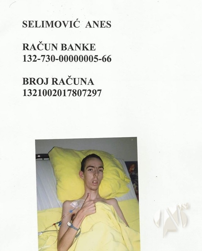 Anesu je u protekloj godini izvršeno niz hitnih operativnih zahvata kako bi mu se spasio život, a sada je potrebna pomoć dobrih ljudi za nabavku lijekova koji su mu neophodni.  Kao dječak Anes je ostao bez majke, a živi sa ocem koji je demobilisani borac i koji nije zaposlen, a trenutno žive kao podstanari u 18 kvadrata u Tuzli.