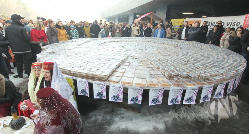 Radi se o baklavi koja je teška 800 kilograma i podijeljena je u 15.200 komada. Bit će nominovana za Ginisa. Cilj je da se na Dan rudara svim rudarima iz Rudnika Kreka i Rudnika Banovići podijelimo baklave, a također prvačićima osnovnih škola u Tuzlanskom kantonu te u Zenici, Velikoj Kladuši i na području općine Odžak”, izjavio je Vedran Jahić, portparol trećeg “Gastro Showa”, u okviru kojeg je podijeljena baklava.