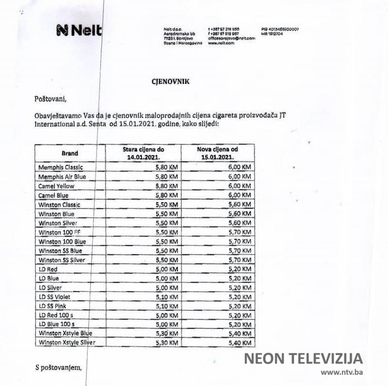 Cigarete su većinom poskupjele u prosjeku između 0,10 i 0,20 KM, dok su cigarete proizvođača JTI Poslka SP z.o.o. poskupjele za 1 KM.