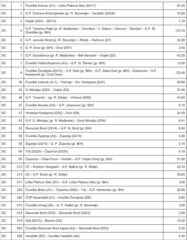 Što se tiče državnih cesta u kojima je dozvoljen ovaj saobraćaj situacija je sljedeća:
