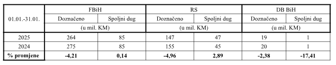 Za finansiranje državnih institucija u januaru 2025. godine raspoređen je iznos od 82 miliona KM.