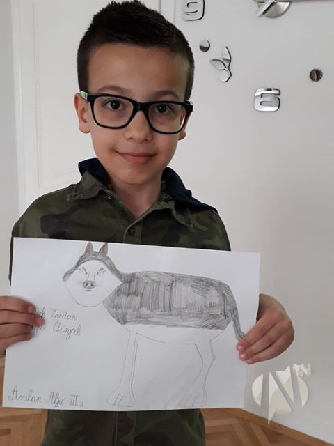 Arslan Aljić učenik je IIIa OŠ Kalesija, učiteljica Amra Omerbegović. Arslan je naslikao Bijelog Očnjaka iz istoimenog romana Džeka Londona