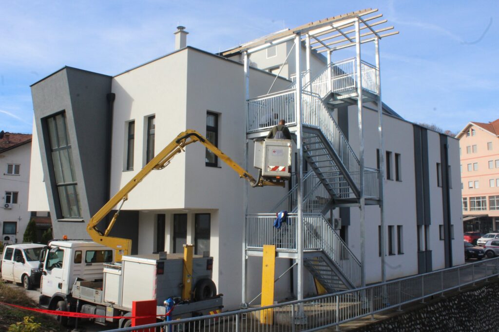 Radove izgradnje požarnog stepeništa, čija ukupna vrijednost sa uračunatim PDV-om iznosi 53.120,34 KM, izvodi građevinsko preduzeće „ELEKTROCENTAR PETEK“ d.o.o Tuzla, dok je za nabavku i ugradnju sistema ozvučenja i rasvjete, te nabavku i ugradnju stolica i pokretne govornice, zaduženo preduzeće „SET UP S“ d.o.o. Tuzla a vrijednost ovih radova ukupno iznosi 93.494,76 KM.