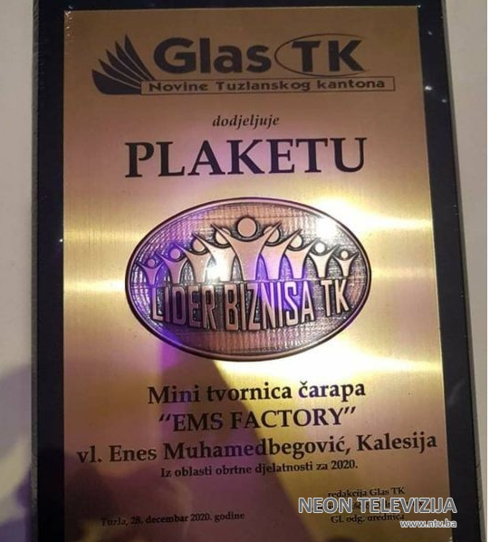 Priznanje Lideri biznisa TK iz oblasti obrtne djelatnosti za 2020. dobila je i mini tvornica čarapa “EMS FACTORY” vlasnika Enesa Muhamedbegovića.