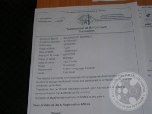 „Uzalud sam im pokazivao dokumentaciju, koja potvrđuje da se on nalazi na studijima u Saudijskoj Arabiji, jer imam njegovu potvrdu o prebavilaštu…“, kaže Sejdinović i dodaje da je sve papire za odlazak njegovog sina na studije dobio lagalnim putem, te da se to može provjeriti i u ambasadi Saudijske Arabije, te u drugim institucijama koje su bile uključene prilikom dobivanja vize za odlazak u Medinu.