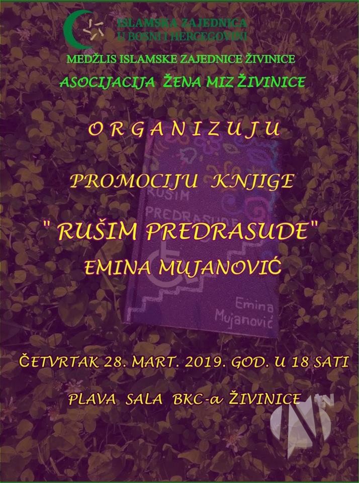 Medžlis IZ Živinice odnosno Asocijacija žena Medžlisa IZ Živinice organizuje promociju knjige Kalesijke Emine Mujanović. Promocija knjige “Rušim predrasude” održat će se u četvrtak 28.marta 2019.godine u BKC Živinice sa početkom u 18:00 sati.
