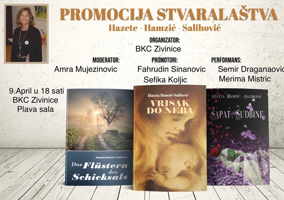 Svoj drugi roman “Vrisak do neba” Hazeta Hamzić Salihović predstavit će kalesijskoj publici 8.aprila 2019.godine. Dan poslije Kalesijska knjižavnica promociju svojih djela pod nazivom “Promocija stvaralaštva” imat će u Živinicama.