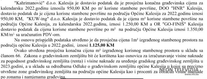 Prosječna građevinska cijena 1 m² stana u 2022. godini na području Kalesije iznosi 1.125 KM