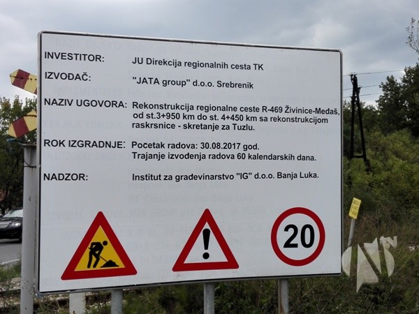 Investitor radova na rekonstrukciji regionalne ceste R-469 Živinice- Međaš je JU Direkcija regionalnih cesta TK, izvođač radova je firma „ Jata group“ iz Srebrenika, koja je prošla na tenderu kao najbolji ponuđač sa oko 426.643,00 KM bez PDV-a.