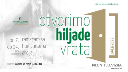 U džematima Medžlisa Islamske zajednice Kalesija ramazanska humanitarna akcija “Otvorimo 1.000 vrata” biće organizovana u periodu od 8. do 15. aprila 2022. god., odnosno tokom druge ramazanske sedmice.