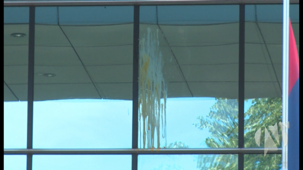 Blagojević je jaja stavio u kesu, došetao se do glavnog ulaza i počeo da gađa prozore na zgradi Vlade Republike Srpske, javlja BN Televizija.