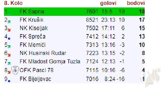 Prvao mjesto na tabeli zauzima  FK Sapna