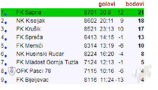 Jesenji prvak je ekipa FK”Sapna”iz Sapne .